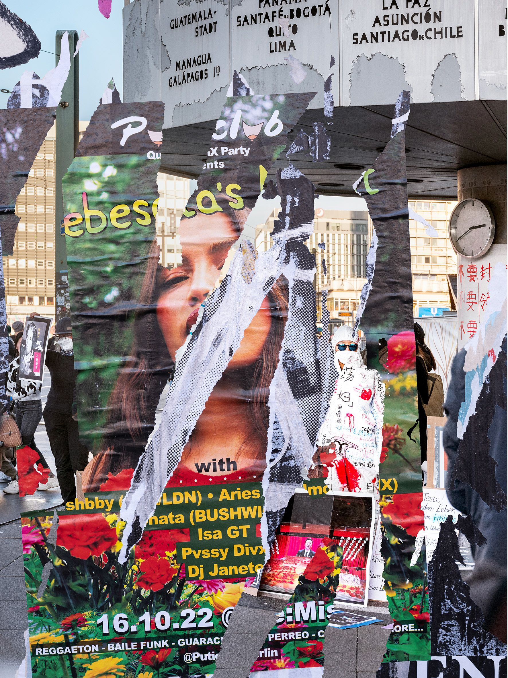 Erkelenzdamm에 붙인 내 포스터 위에 베를린에서 열리는 시위를 알리는 작은 전단들이 붙기 시작했는데, 터키에 대항하는 쿠르드사람들의 데모시위전단이 붙은날 그것을 내가 붙인 것으로 오해한 터키할아버지로부터 거센 항의를 받는 일이 있었다. There were some stains of small flyers on the poster at Erkelenzdamm, and there was a person who was angry at me about a flyer over my poster on Oranien Platz.